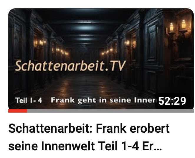 | Frank erobert seine PSYCHE - Doku mit 14 Sessions als kommentierte Videos Die natürliche Intelligenz ist der künstlichen Intelligenz unbegrenzt überlegen. Hier findest du 14 Sessions, die aus der natürlichen Intelligenz der PSYCHE von Frank entsprungen sind. Die künstliche Intelligenz hat die wunderbaren Bilder hinzugefügt. Diese Bilder sind statisch, die Innenweltbilder von Frank hingegen lebendig und haben einen tiefen Sinn. Eine künstliche Intelligenz hat die Interpretation zu den einzelnen Sessions hinzugefügt. Der natürlichen Intelligenz des Zuschauers verbleibt die Möglichkeit tief zu erstaunen, über die innere Weisheit des komplexen Systems "PSYCHE" des Menschen. Viel Spaß beim staunen. |