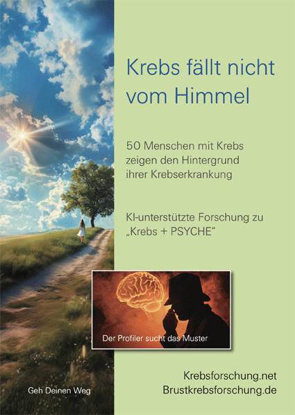 | Das Anbieten von Heilung bei Krebs ist strafbar. Es reicht schon der Wunsch als Motivation einer Klientin, wie Richter Dr. Immerschmitt vom Landgericht Frakfurt 2010 für eine Bestrafung einer Synergetik Therapeutin definierte. Ein Mensch mit Krankheit hat aber auch ein Recht auf "inneres aufräumen" und einem Verständnis der tieferen Zusammenhänge. Der Therapieaufenthalt unterscheidet sich nur graduell von einem normalen gesunden Menschen. Fazit: Ein Mensch mit Krebs darf keine Heilung durch Innenweltarbeit erwarten, sonst macht sich der Anbieter starfbar, aber eine Selbstheilung probieren. Maria hat die Diagnose Brustkrebs. Sie will wissen, was im Hintergrund arbeitet und was sie in ihrem Leben verändern muß. Sie bucht eine Therapiewoche und zahlt 1.990 € für 7 Sessions. Sie vereinbart eine Forschungsverlauf mit einer KI Interpretation mit Bernd Joschko. Was sie dabei erlebt und wie eine psychoanalytische Bewertung durch eine KI aussieht, erfährst du hier. |